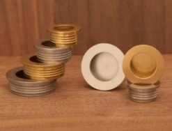 Brusso CP cabinet pulls are machined from solid bar stock, and you can feel the quality and weight of the pulls in your hand. Brass and Stainless pulls both have an understated burnished finish, and will hold up to a lifetime of use.