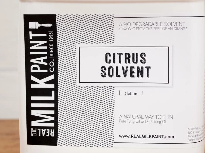 For woodworkers, the most popular use of Citrus solvent is mixed 1 to 1 with Real Milk Paint tung oil or dark tung oil to bring out the natural beauty of wood grain while protecting against water, and wear. In the Gramercy Workshop keeps a gallon in our solvent cabinet, where we use it as a replacement for higher toxicity cleaners and solvents.