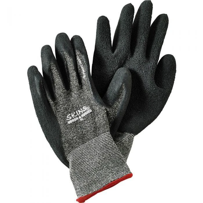 Skins have palms and fingertips coated with rugged, textured latex rubber for grip and durability. The light and breathable material conforms to the shape of your hand. Machine washable and quick drying.
