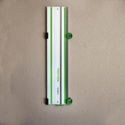 Although the neon green stripe makes the Track Rack seem especially well-matched with Festool tracks, the Track Rack also works well with Makita, DeWalt, Triton and the Kreg Adaptive Cutting System. It does not work with Kreg AccuCut track.