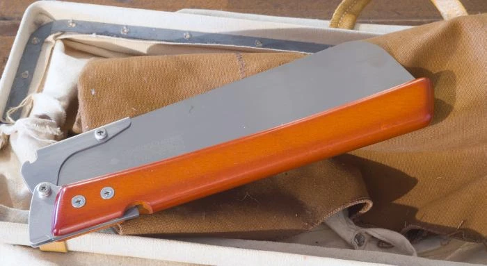 Impulse hardened teeth. Rustproof with nickel plating. Blade length: 240 mm (9.4″). Blade thickness: 0.6 mm. Teeth pitch/TPI: 1.9 mm/13.4. Kerf: 0.90mm. Solid wood handle. Made in Japan.
