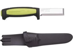 Wear the chisel knife on your tool belt, tuck it in your tool bag or even hang the sheath on your jacket’s button – just have it with you and you’ll find a thousand reasons why you’ll be glad you did. Blade Thickness: 0.12 in (0.31 cm), Blade Length: 3.0 in (7.5 cm), Total Length: 7.75 in (19.7 cm), Net Weight: 4.9 oz (139 g). Comes with sheath.