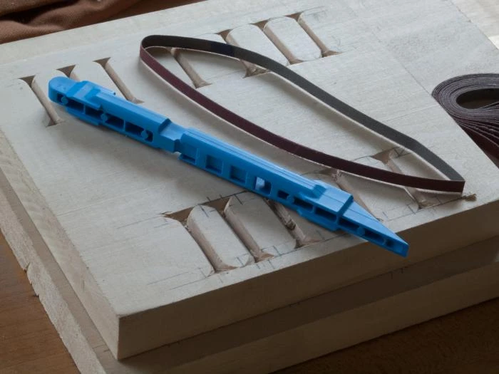 These American made sanding detailers are a great way to sand small areas with the same control you have on larger work. The detailers consist of 6-1/4″ long spring loaded plastic holders that securely hold small 1/4″ wide sanding belts. This creates an easy to grasp holder that allows you to positively apply pressure and you can sand with maximum efficiency. The combination of tapered or rounded ends and a straight middle section on the detailer gives total control.