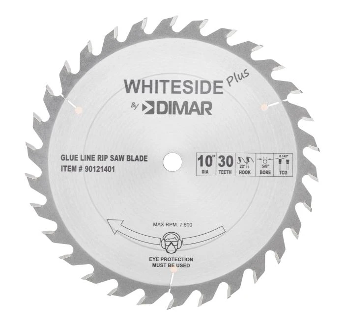 The Glue Line Ripping Blade with triple chip grind (TCG) geometry offers an extremely smooth surface for gluing and finish work without additional planing or sanding.